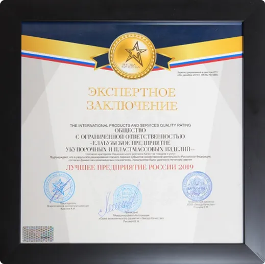 В национальном рейтинге качества товаров и услуг Российской Федерации «Елабужское предприятие укупорочных и...